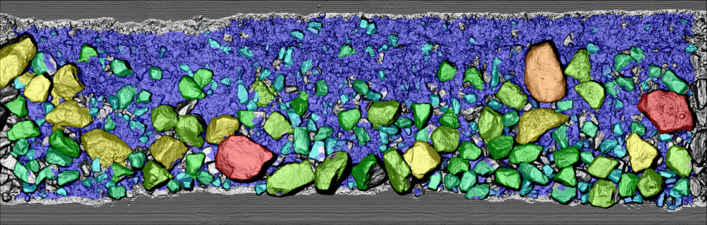 With suitable hardware you can watch your data in powerful 3D format instead of guessing from a 2D (photo) image. Below is an example on how 3D brings your particle data meaning since it builds a 3D map with heights over the sampled material. This technique does not only present the material nicely for a human eye, but it is also essential for robust particle delineation.